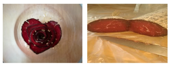 發(fā)酵牛肉火腿是一類以新鮮衛(wèi)生牛胴體分割肉為原料,在嚴格控制溫濕度環(huán)境條件下,采用低溫腌制、中溫發(fā)酵干燥等工藝加工而成的一類即可直接食用,又可以烹飪加工成各類美食牛肉菜肴的發(fā)酵肉制品。產(chǎn)品具有食用安全、形態(tài)誘人、風(fēng)味獨特、口感鮮嫩、營養(yǎng)豐富、富含有益生菌以及功能肽類等功能性美食特點。