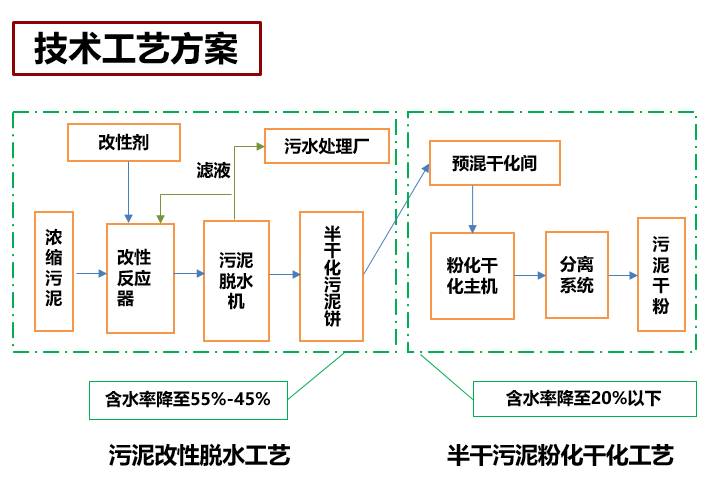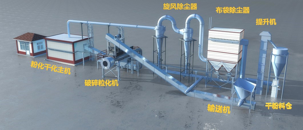 課題在強化污泥調理脫水的基礎上,運用流體力學和空氣動力學原理,使半干污泥在強空氣湍流中超細化粉碎并完成固氣水分交換,形成強效的風干效果,極大程度降低污泥含水率。形成“高壓調理脫水-超細粉化空氣深度干化”分段式脫水干化技術,解決污泥干化能耗大、周期長的難題。污泥含水率<20%,遠低于其他工藝;成本僅為常用的熱干化技術的1/2;常溫下進行,相較熱干化技術節能40%以上。