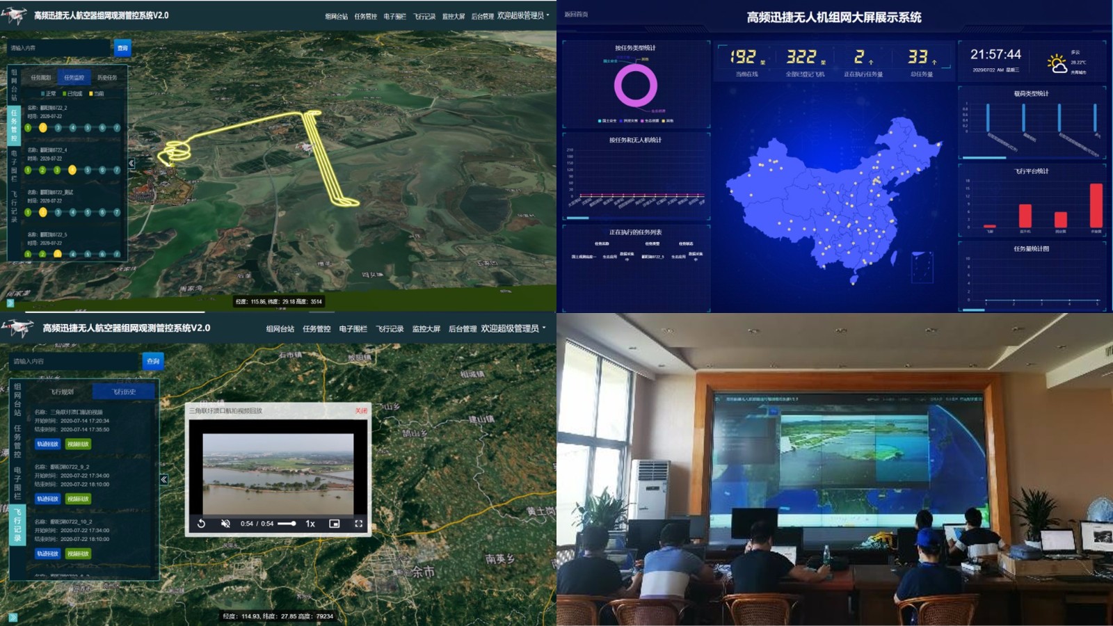 該遙感無(wú)人機(jī)集群組網(wǎng)觀測(cè)系統(tǒng)面向洪澇災(zāi)害應(yīng)急業(yè)務(wù)需求,于2020年7月投入長(zhǎng)江流域鄱陽(yáng)湖洪澇災(zāi)害應(yīng)急監(jiān)測(cè)應(yīng)用示范試驗(yàn),為我國(guó)防汛應(yīng)急管理建設(shè)提供了有力支持。